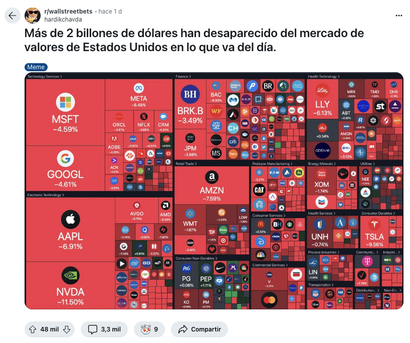 En los últimos tres días, los "7 Magníficos" perdieron aproximadamente $1.3 billones en capitalización de mercado ($800 mil millones solo ayer).