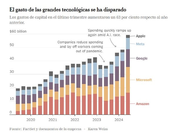 Ayer fue un día especialmente malo para los "7 Magníficos", las principales 7 acciones tecnológicas que están invirtiendo fuertemente en IA, con alrededor de $59 mil millones de dólares solo este trimestre.