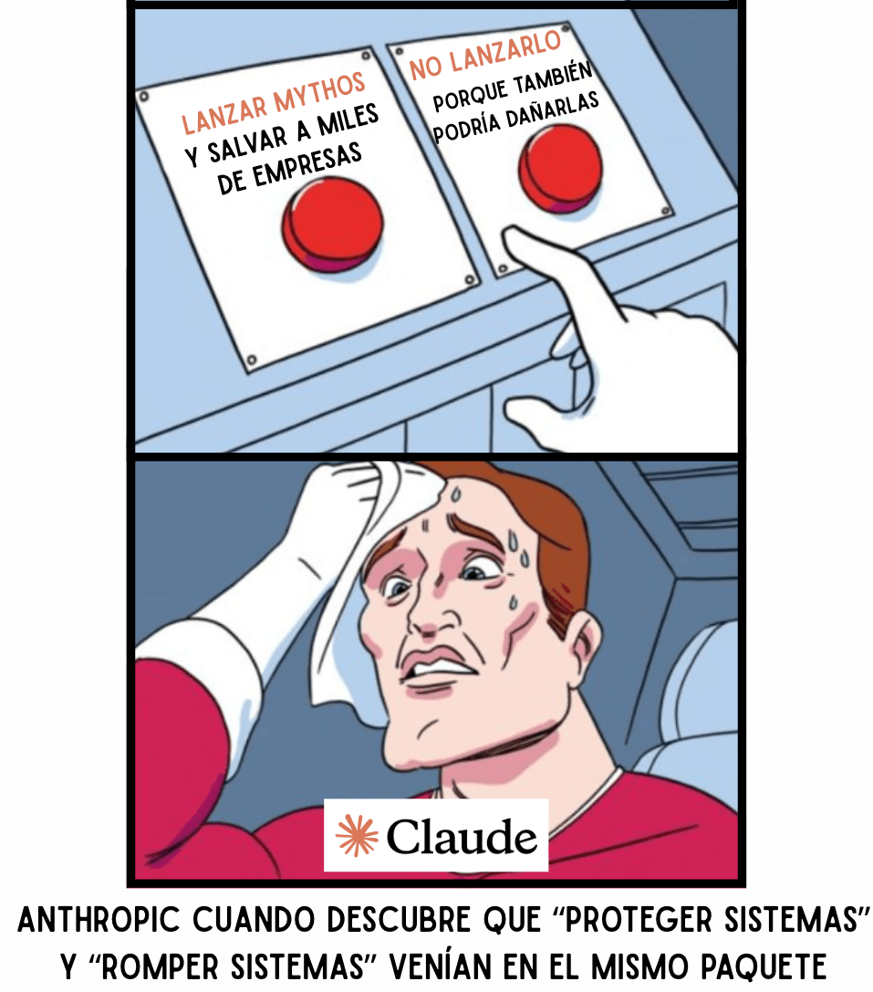 Mythos: la IA que encuentra agujeros antes que los hackers. Anthropic creó un modelo de IA tan bueno encontrando fallas de seguridad en software que decidió no lanzarlo completo. Mythos puede identificar vulnerabilidades (debilidades en el código que un atacante podría explotar) en programas usados por millones de personas, desde sistemas bancarios hasta plataformas de gobierno electrónico. La ironía es notable: la empresa que se fundó en 2021 prometiendo "IA segura" ahora tiene que restringir su propio producto porque es demasiado eficaz rompiendo la seguridad de otros.