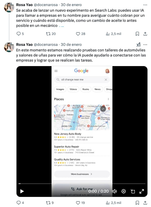Google lanza “Ask for Me”, la IA que automatiza llamadas comerciales. La nueva función permite a la IA gestionar consultas y reservas telefónicas, simplificando la interacción con empresas y marcando un hito en la automatización de servicios cotidianos. Fuente: TechCrunch